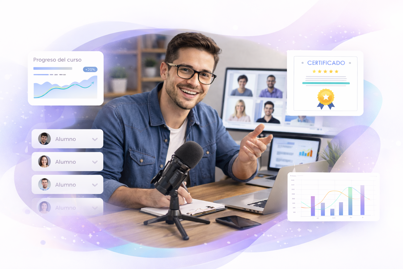 Si eres creador, docente o profesional y quieres crear y vender cursos online, te acompañamos paso a paso con una plataforma LMS diseñada para convertir tu conocimiento en ingresos.
