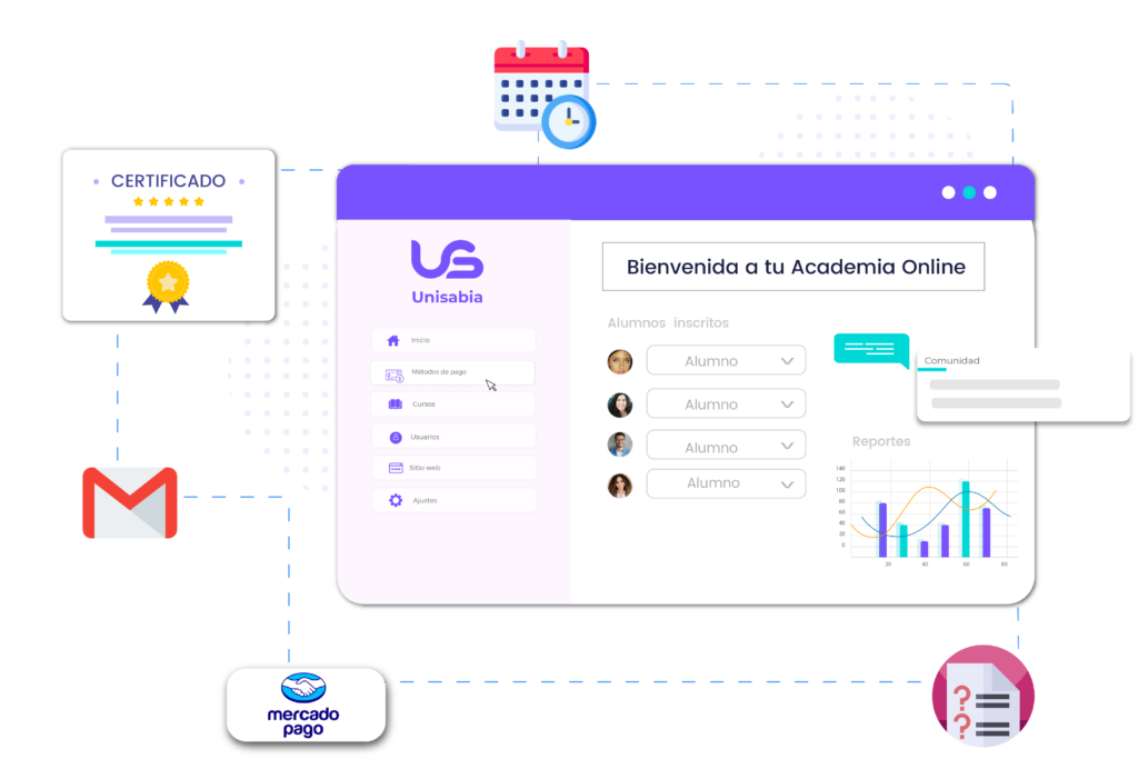 Con Unisabia, automatizas la venta de tus cursos online y ofreces una experiencia de aprendizaje profesional, escalable y fácil de gestionar.
